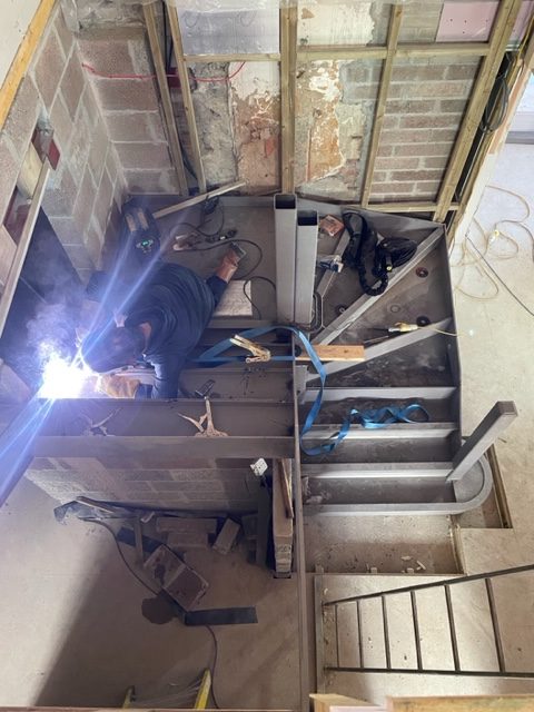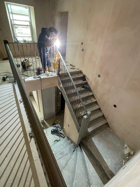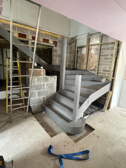 The stair was to be the main fire escape hence it was manufactured from steel for fire retardant purposes.
